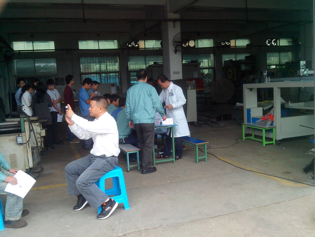 今天公司組織了全體員工的年度體檢活動,把關愛員工的措施進一步落實。醫(yī)院體檢車直接開到公司對全體員工進行體檢。當員工井然有序地排隊抽血、拍片、查血壓等項目時,也深深體會到公司的愛。我們將會銘記公司這份愛,在工作當中認真付出,為客戶提供高品質(zhì)、高性價比的噴涂設備、自動化生產(chǎn)線,最大限度地達到客戶滿意。