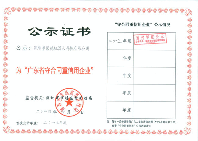 在此之際,非常感謝廣大客戶朋友對公司的認(rèn)可和滿意,只有客戶對公司的認(rèn)可,這樣公司合同才能夠嚴(yán)格履行,最終才能獲得該榮譽(yù)稱號(hào)。全體榮德人將會(huì)以此為契機(jī),將產(chǎn)品質(zhì)量和服務(wù)做到行業(yè)內(nèi)一流水平,滿足并不斷超越客戶需求。同時(shí)也請客戶放心選購我司的噴涂機(jī)器人、自動(dòng)噴涂設(shè)備、自動(dòng)化生產(chǎn)線,獲得“廣東省名牌產(chǎn)品”的“守重企業(yè)”值得您的信賴,我們將會(huì)以最優(yōu)質(zhì)的質(zhì)量回報(bào)客戶、回報(bào)社會(huì),為深圳質(zhì)量的發(fā)展乃至全國質(zhì)量的發(fā)展貢獻(xiàn)自己的力量!
